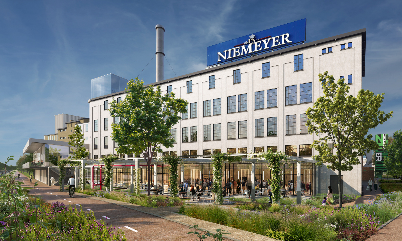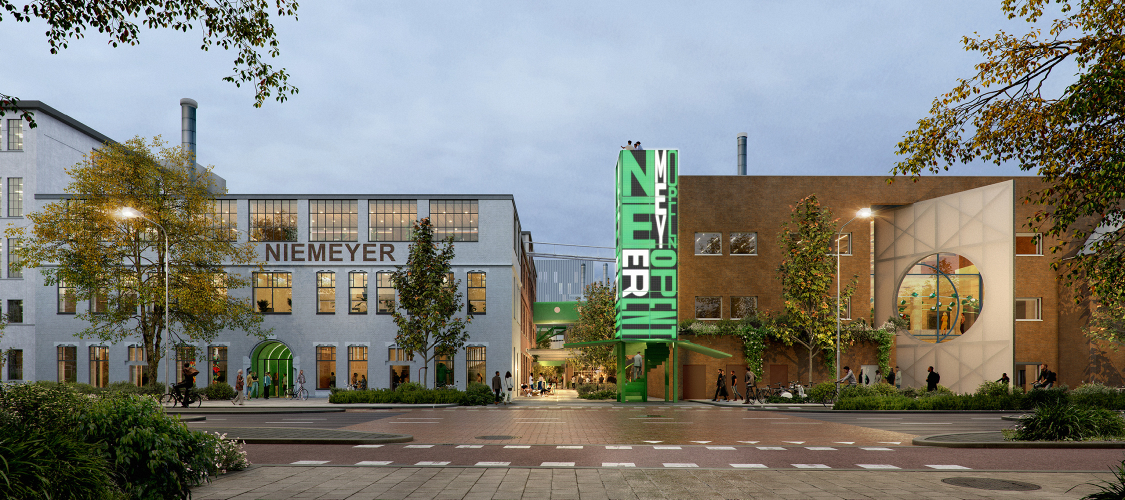 On a former factory site in Groningen, tobacco was processed behind brick walls and locked gates for over two centuries. Now, for the first time, this hidden industrial world will open up as ‘Niemeyer’ — a bold new public place in the heart of the city. By opening up the 40,000 m² complex, we’re transforming a sealed industrial relic into a connected urban district, designed for innovation, culture and encounter.