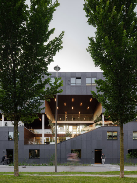 Designed as a tilted warehouse, C14 not only reflects the area’s industrial history, but symbolises Cityplot Buiksloterham, where all buildings, public space and landscape work together as one sustainable system.